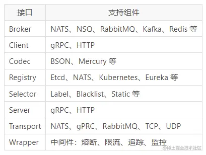 Go Micro 官方创建了一个 Plugins 仓库,用于维护 Go Micro 核心接口支持的可替换插件: