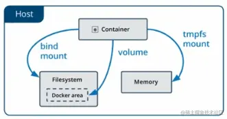 (3)tmpfs:挂载存储在宿主机系统的内存中,而不会写入宿主机的文件系统;(一般都不会用的方式)