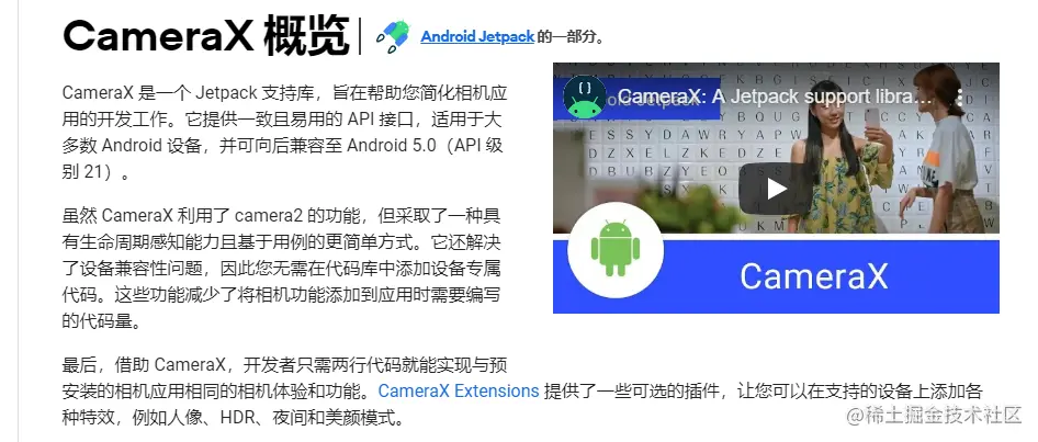 简单说就是,camera过时,camera2用起来太麻烦(不好用),谷歌爸爸帮忙做个封装