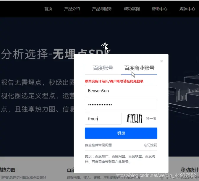 输入登录的用户名和密码进入百度商桥的后台界面。