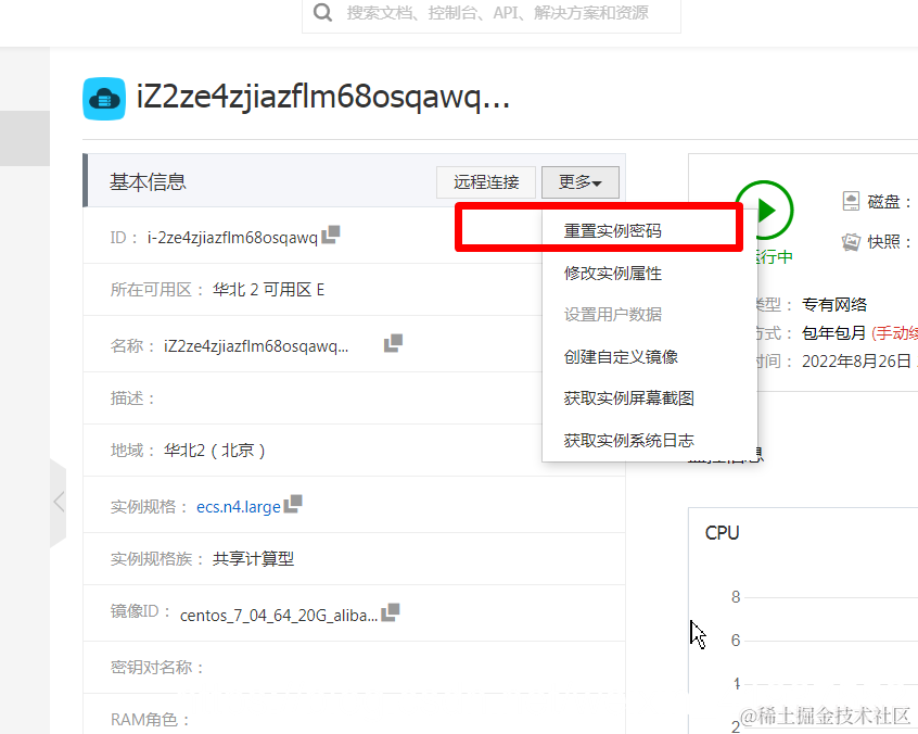 2.重置实例密码,这个不用担心,只要登录进去就不要手机验证码,直接输入密码,确认密码,重启一下服务器就可以,2分钟搞定。
