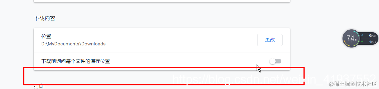 谷歌浏览器下载的内容老是自动打开 孙叫兽 2021-06-28 980 阅读1分钟 原因是每次下载内容在浏览器左下角都有提示,一般都是选择打开所在文件夹,一次手残,点了总是打开此文件导致一下载文件就自动打开。 解决方法。 1.点击右上角的... 2.找到设置-高级设置-下载 3.关掉我标红的位置信息即可。现在看不到啦,我已经修改过来啦,正常。