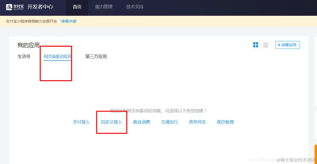 2.找到网页&移动应用,选择自定义接入。企业账户和个人账号会稍有差别,我先用个人账号做演示。
