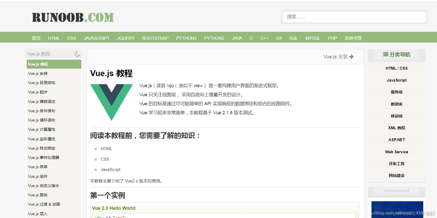 Vue.js(读音 /vjuː/, 类似于 view) 是一套构建用户界面的渐进式框架。 只关注视图层, 采用自底向上增量开发的设计。目标是通过尽可能简单的 API 实现响应的数据绑定和组合的视图组件。学习起来非常简单,本教程基于 Vue 2.1.8 版本测试。VUE菜鸟教程
