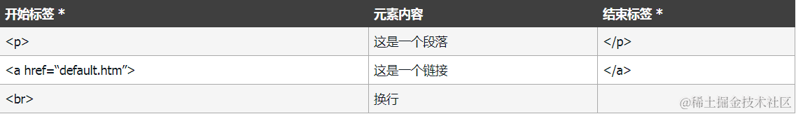 但是严格来讲, 一个 HTML 元素包含了开始标签与结束标签,如下实例: