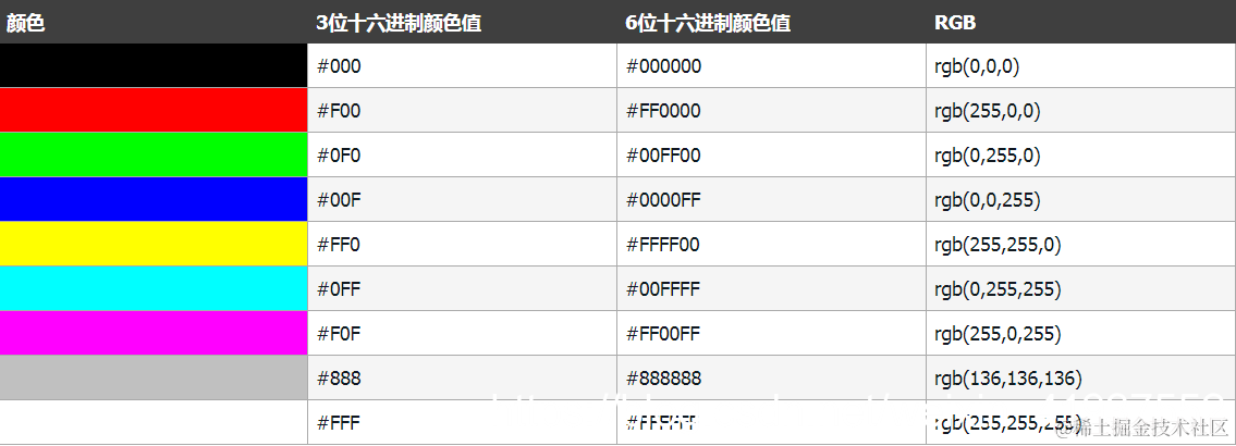 - HTML 颜色值