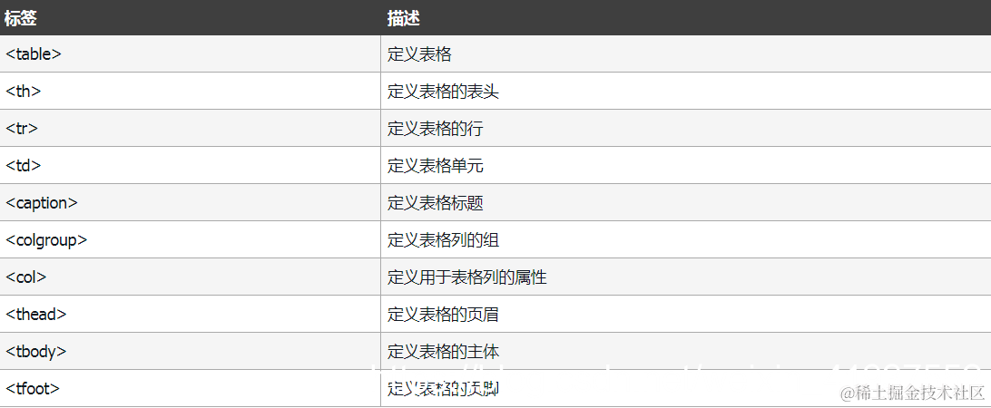 - HTML 表格