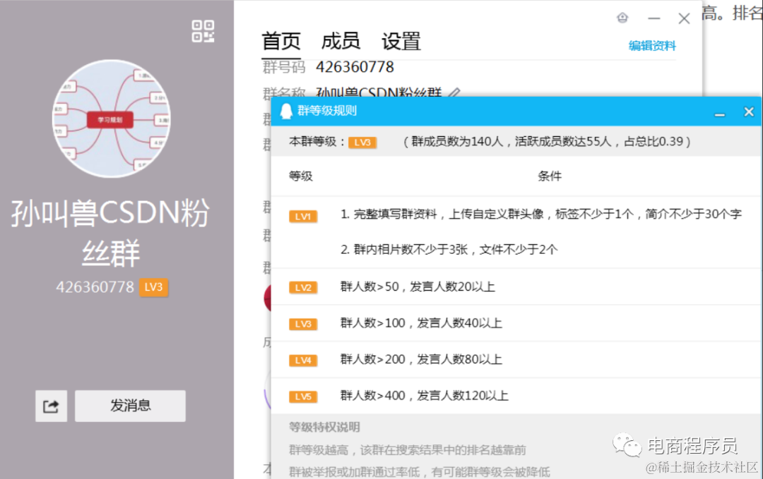 以上四个都有了以后,就是你群的活跃度怎么样啦,每天多少人聊天,聊天的人越多,群的活跃等级就越高。排名就越靠前。