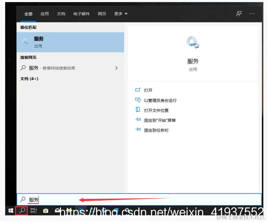 桌面左下角搜索,输入“服务”,打开(如下图)