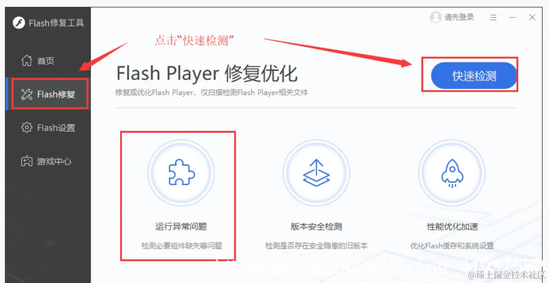 下载Flash Player官方修复工具进行一键修复 点击下载