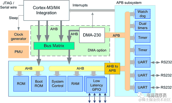 - 可以选配一个ETM,用于指令跟踪。数据的跟踪可以使用DWT