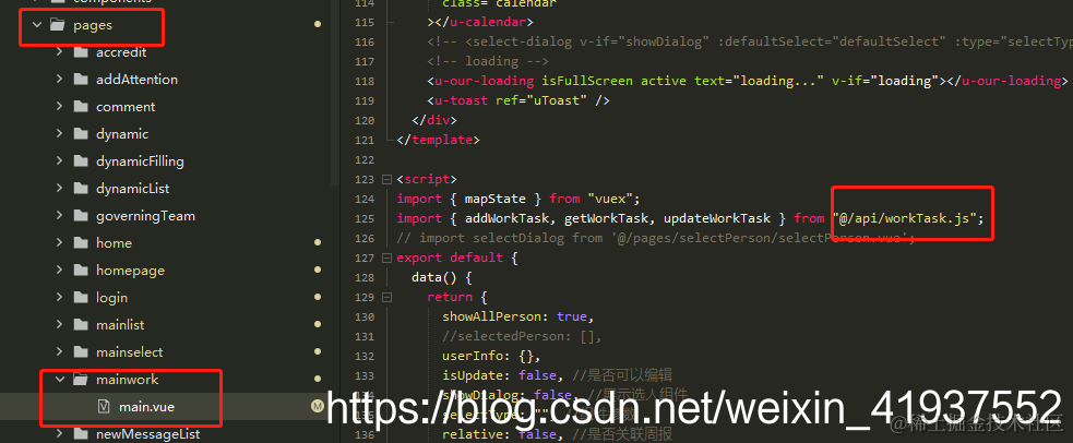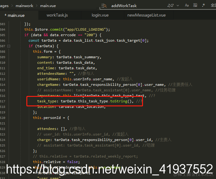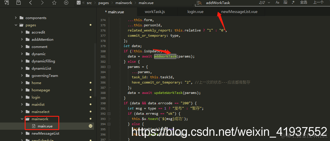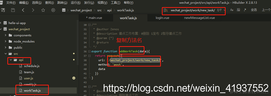 复制请求地址,去API/workTask.js检索,快捷键Ctrl+F