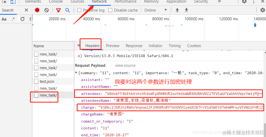 这个不支持数组直接加密的,因此我们需要将数组转换成字符串,如果后端处理了,我们就不用转成字符串啦,具体可以使用console.log(this.personId.attendees);打印一下。