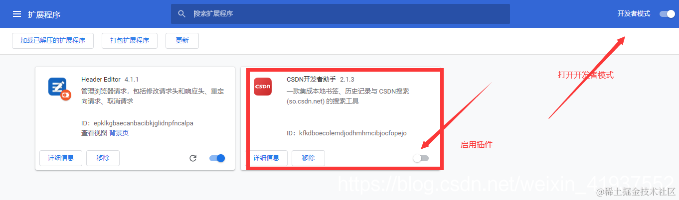 第二步:在谷歌浏览器的扩展程序中安装,这个chrome首先要打开开发者模式.加载已经解压的扩展程序。