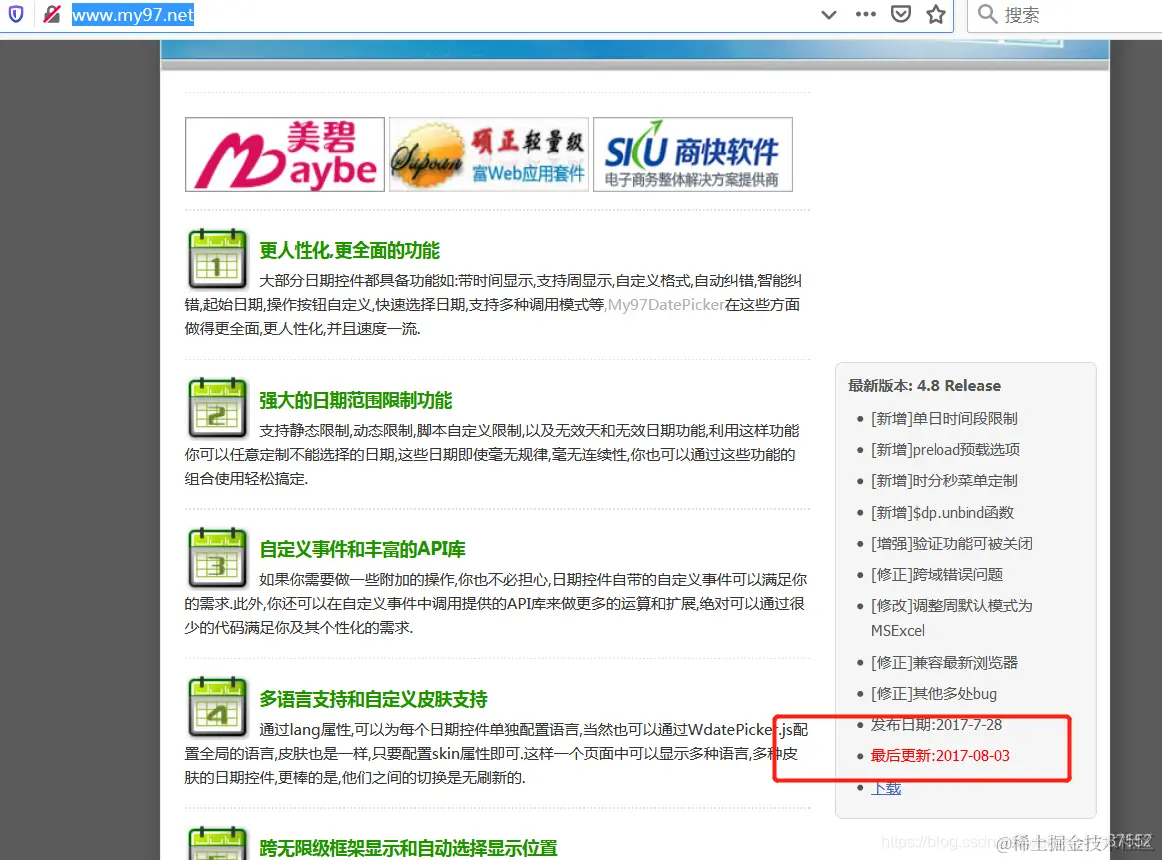 My97DatePicker最新版更新到2017/8/3.这个是我不愿意使用它的原因,不活跃。
