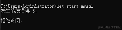 CMD启动mysql服务“发生系统错误 5”的解决办法 孙叫兽 2021-06-28 163 阅读1分钟 背景:cmd进入,启动mysql报:发生系统错误 5 问题: 解决办法: 找到cmd.exe的位置,不好找请使用以下命令。 找到文件,右键以管理员身份运行即可。