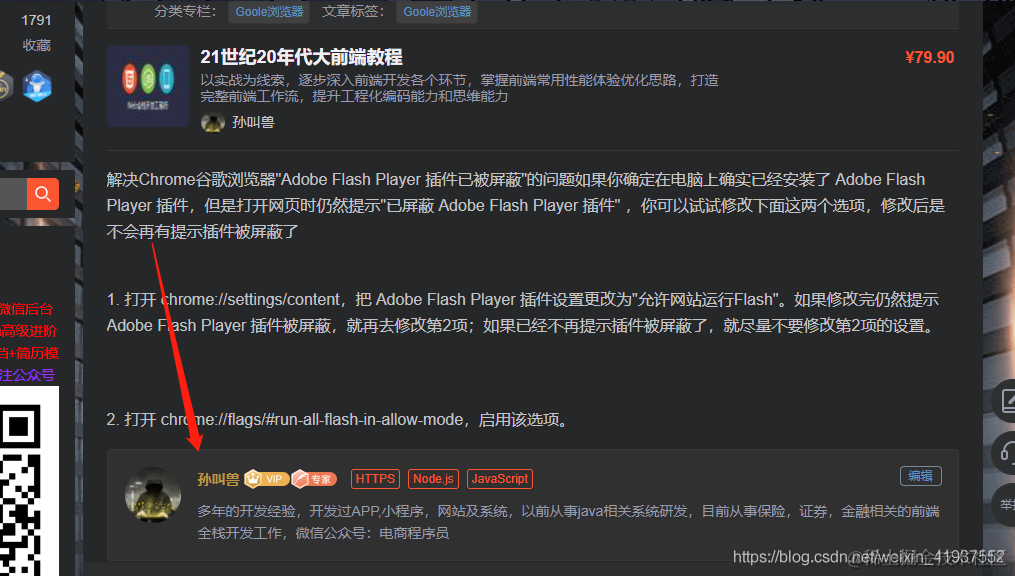在CSDN的博文中如何添加博主名片 孙叫兽 2021-06-28 296 阅读1分钟 前言:以前看到很多大佬博文中都有自己的名片,我以为是他们自己打字打上去的,自己打上去样式却不理想。今天终于发现了新大陆。分享给你们。 效果图: 设置方法如图:找到创作权益——博主名片——展示博文详情页,设置自己的个人介绍提交即可,一般即时生效。需要注意的是,最近官方频繁改版,有些版权确实不好找,需要自己慢慢熟悉