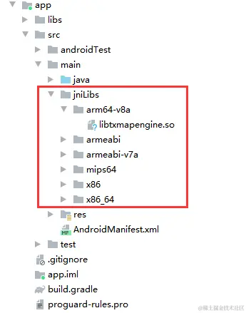 - 将 jniLibs 目录下的所有文件按照原目录格式,拷贝到AndroidStudio项目对应的 app/src/main/jniLibs/ 目录下。