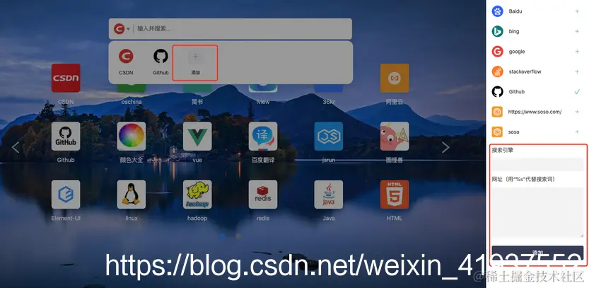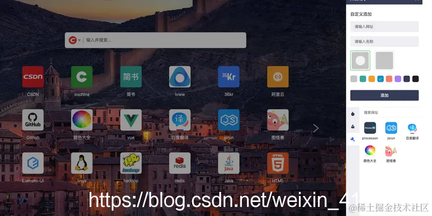 支持添加自己喜欢的标签页: