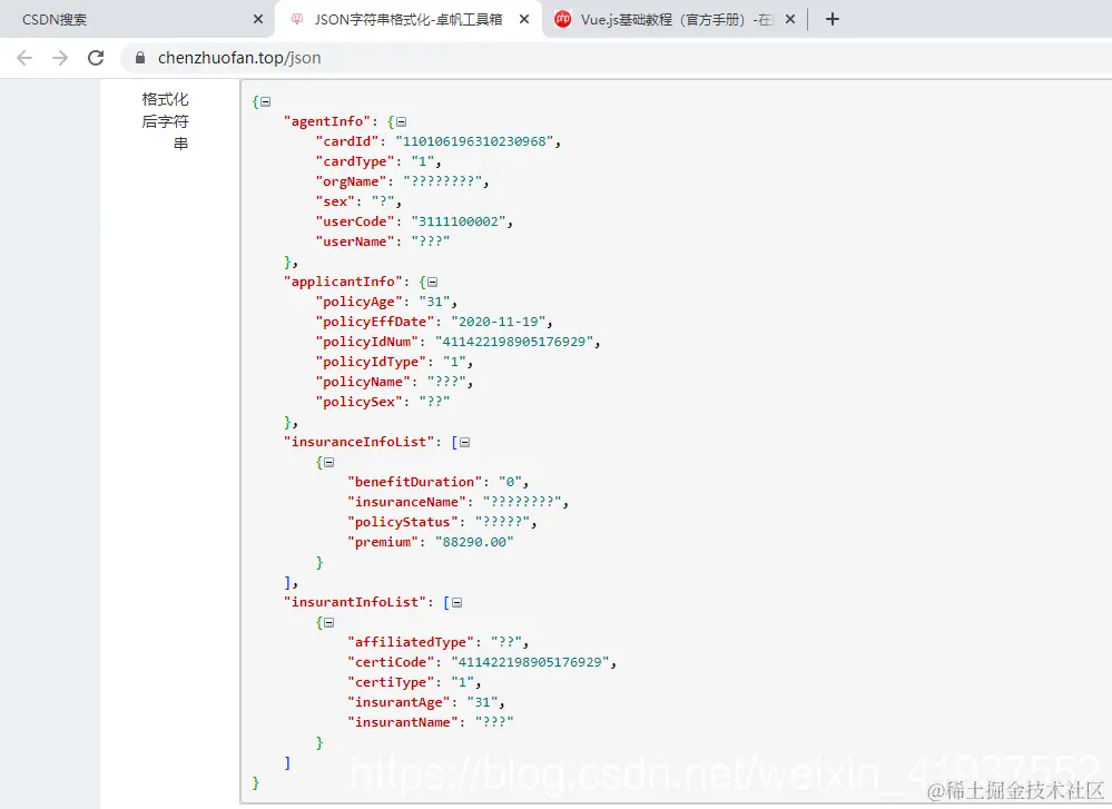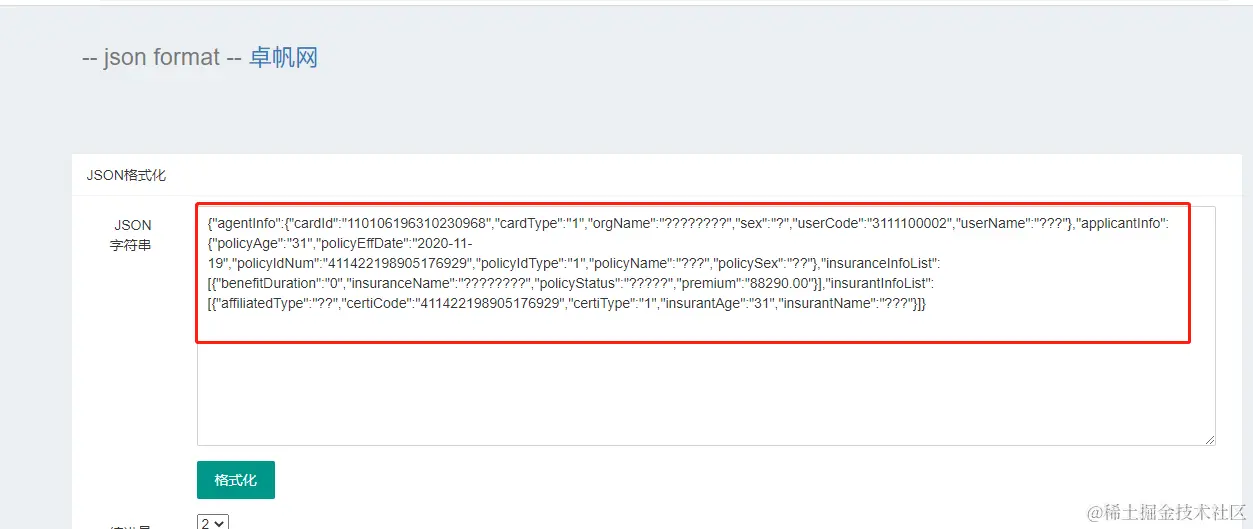 又比如,前端收到后台传的json字符串,我们也可以找到在线工具——json格式化