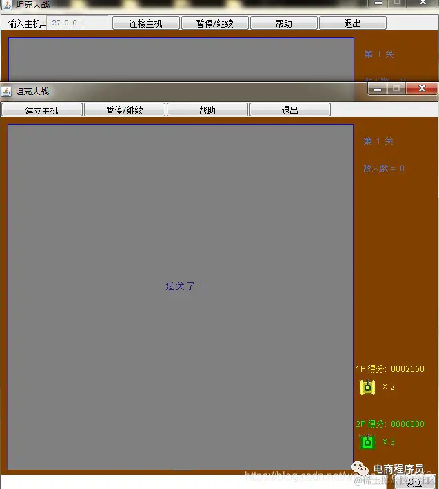 导读:随着人们对生活质量的要求一天比一天高,为了让人们更好地开掘自身的智慧,游戏就此进入了大众的视野,在人们的生活中有着重要的位置,已然变得必不可少。游戏产业推动高新技术不断升级,极大地促进了经济的增长,推动了“第四产业”的经济腾飞。坦克大战游戏是童年时期经常玩的经典游戏,我们对它都十分了解。游戏通过分析JAVA游戏开发和代码设计,用Eclipse软件开发了坦克大战游戏,运用接口技术,使一个类能够实现多个接口,使用套接字Socket来完成client端和server端的连接。玩家通过连接访问进入游戏,通过操纵坦克来守卫基地,玩家还可以获得超级武器来提升坦克的属性,摧毁全部敌方坦克来取得胜利,操作非常简单,还具有非常高的普遍率,适合所有人群玩。该游戏既满足了人们的个性化需求,也让玩家在游戏过程中丢掉烦恼,尽情地释放压力。