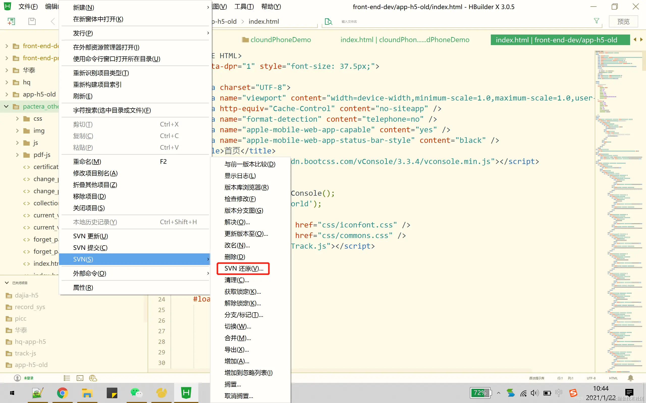 最近工作有点忙,让领导帮我改了一下前端代码,后面又有新的需求,然后就让我SVN还原一下再更新,我就直接更新啦,顺便总结一下这两者的区别,怕影响项目进度,然后采用把项目删除,再从SVN更新一下,也是一样的效果。