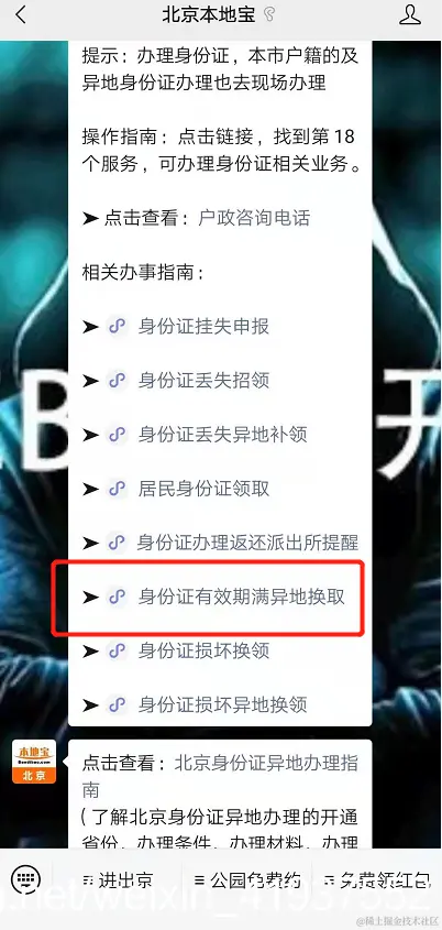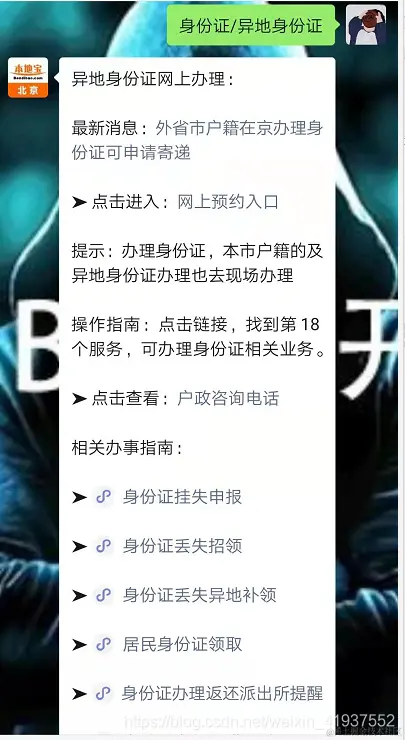 先在【北京本地宝】这个公众号上面回复关键词:身份证/异地身份证。根据自己的情况进行网上预约。