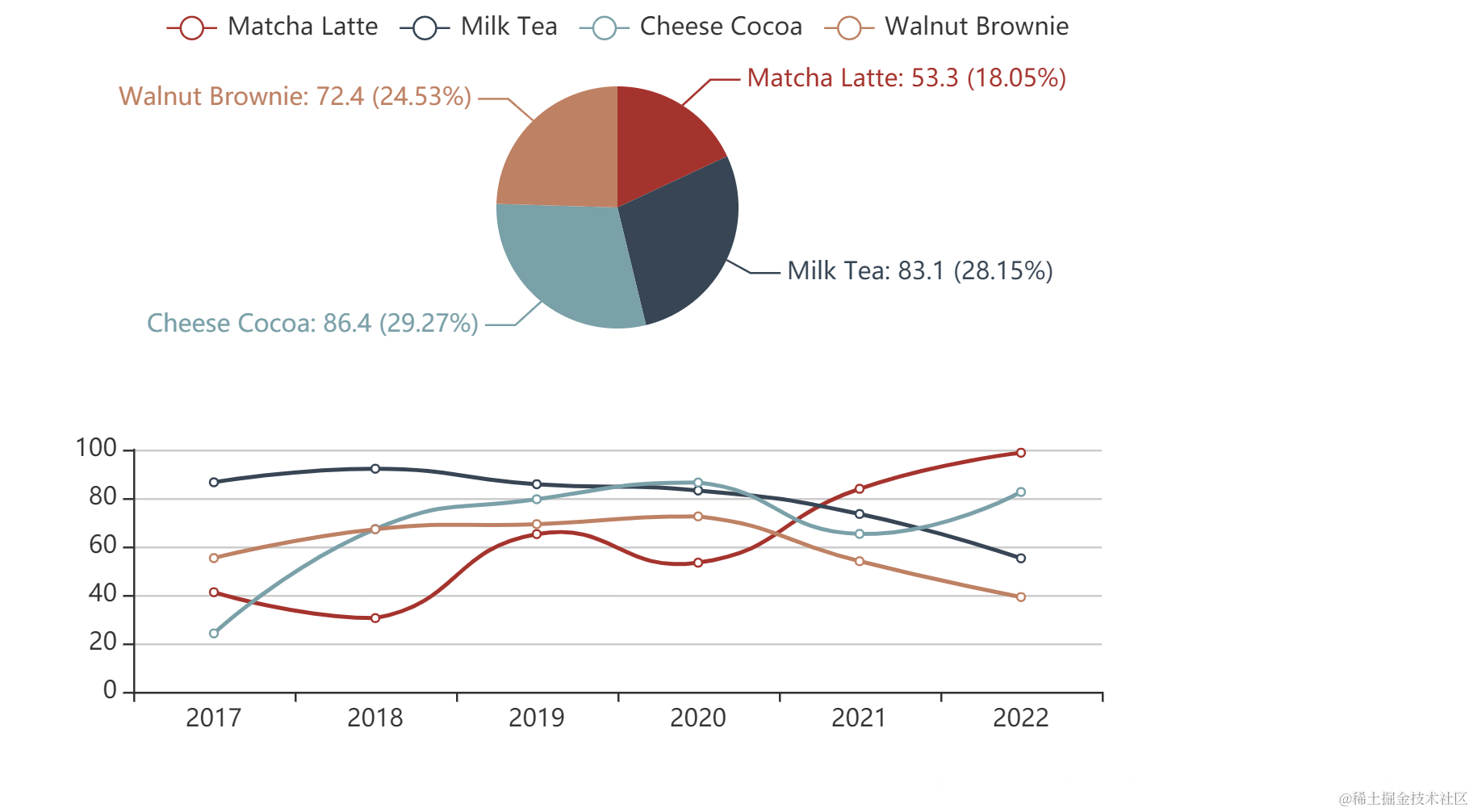 - 无障碍访问(4.0+) : 支持自动根据图表配置项智能生成描述,使得盲人可以在朗读设备的帮助下了解图表内容,让图表可以被更多人群访问!