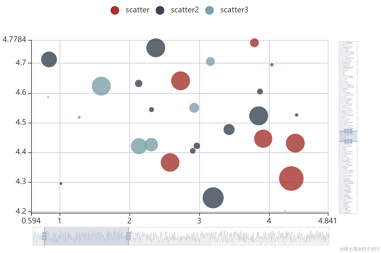 - 多维数据的支持以及丰富的视觉编码手段: 对于传统的散点图等,传入的数据也可以是多个维度的。