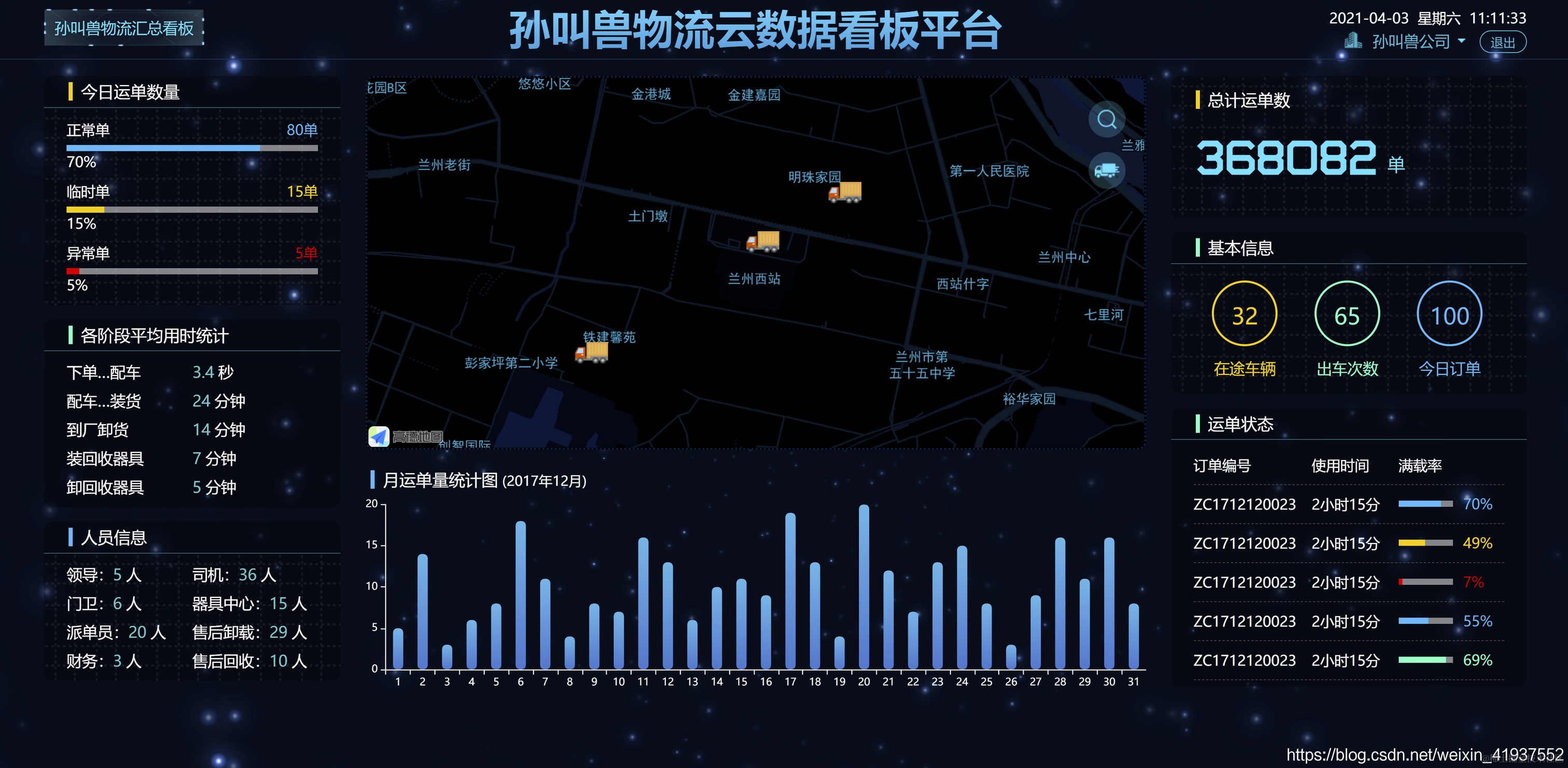 基于Echats的可视化大屏物流汇总看板