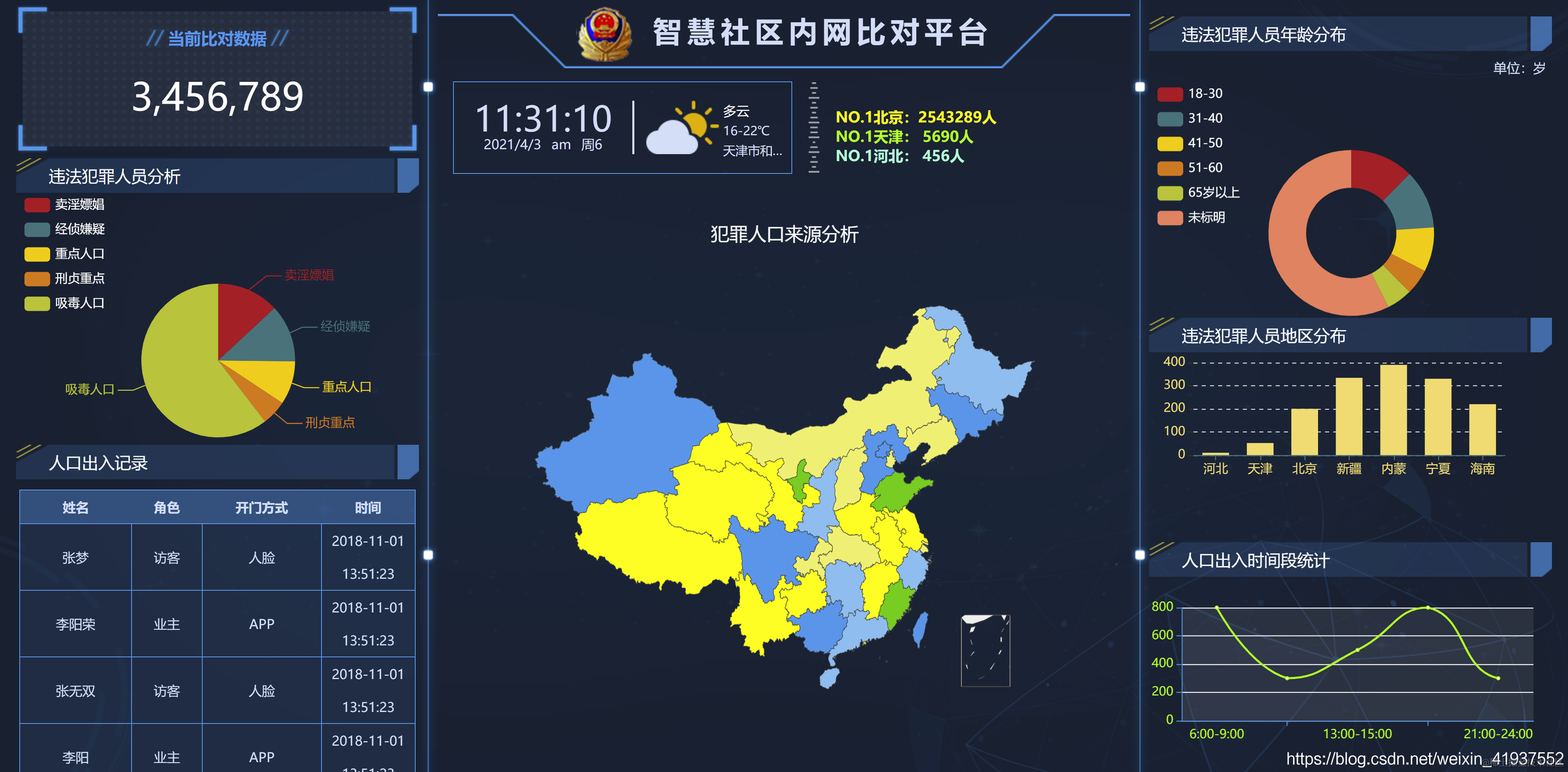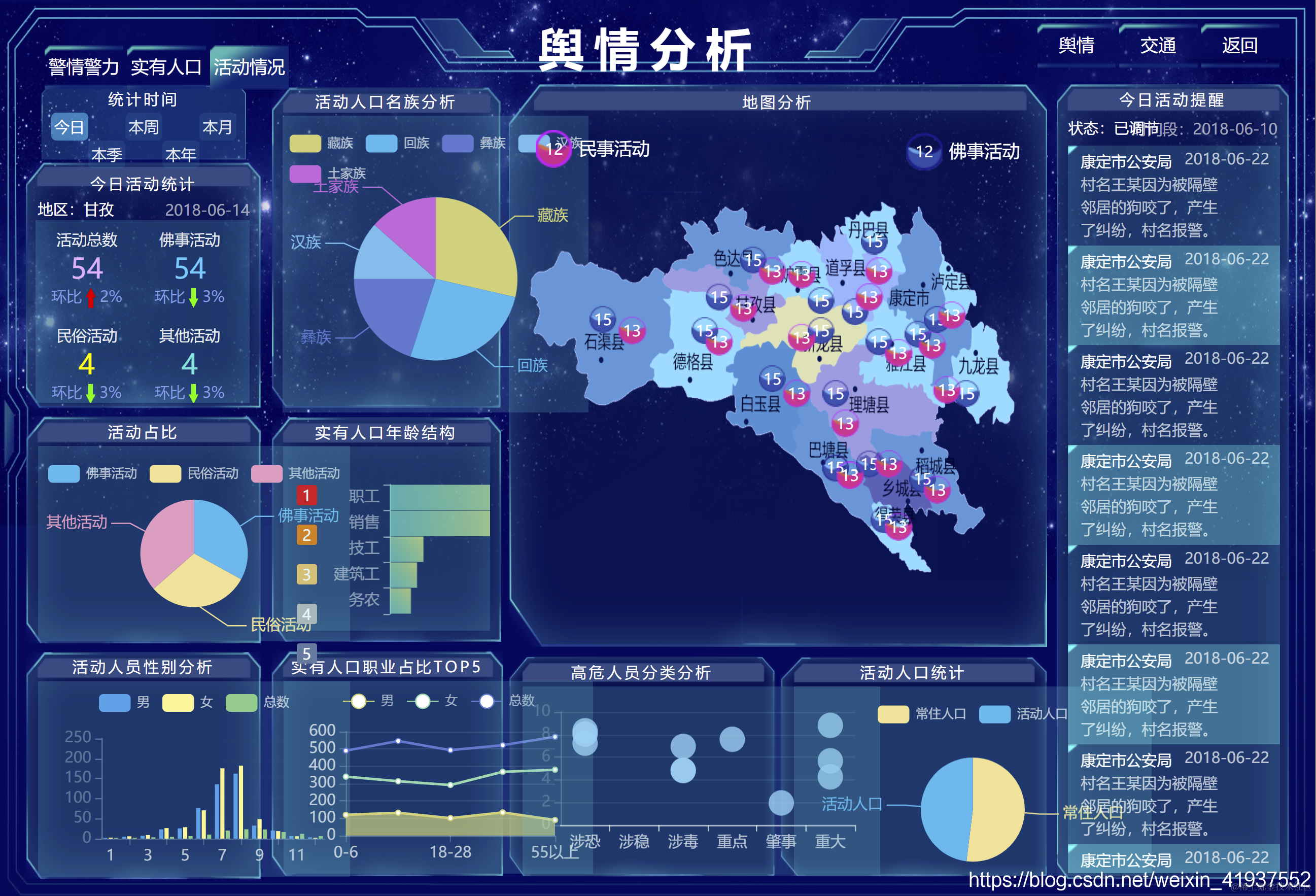 基于Echats实现的可视化大屏展示【人口分析】