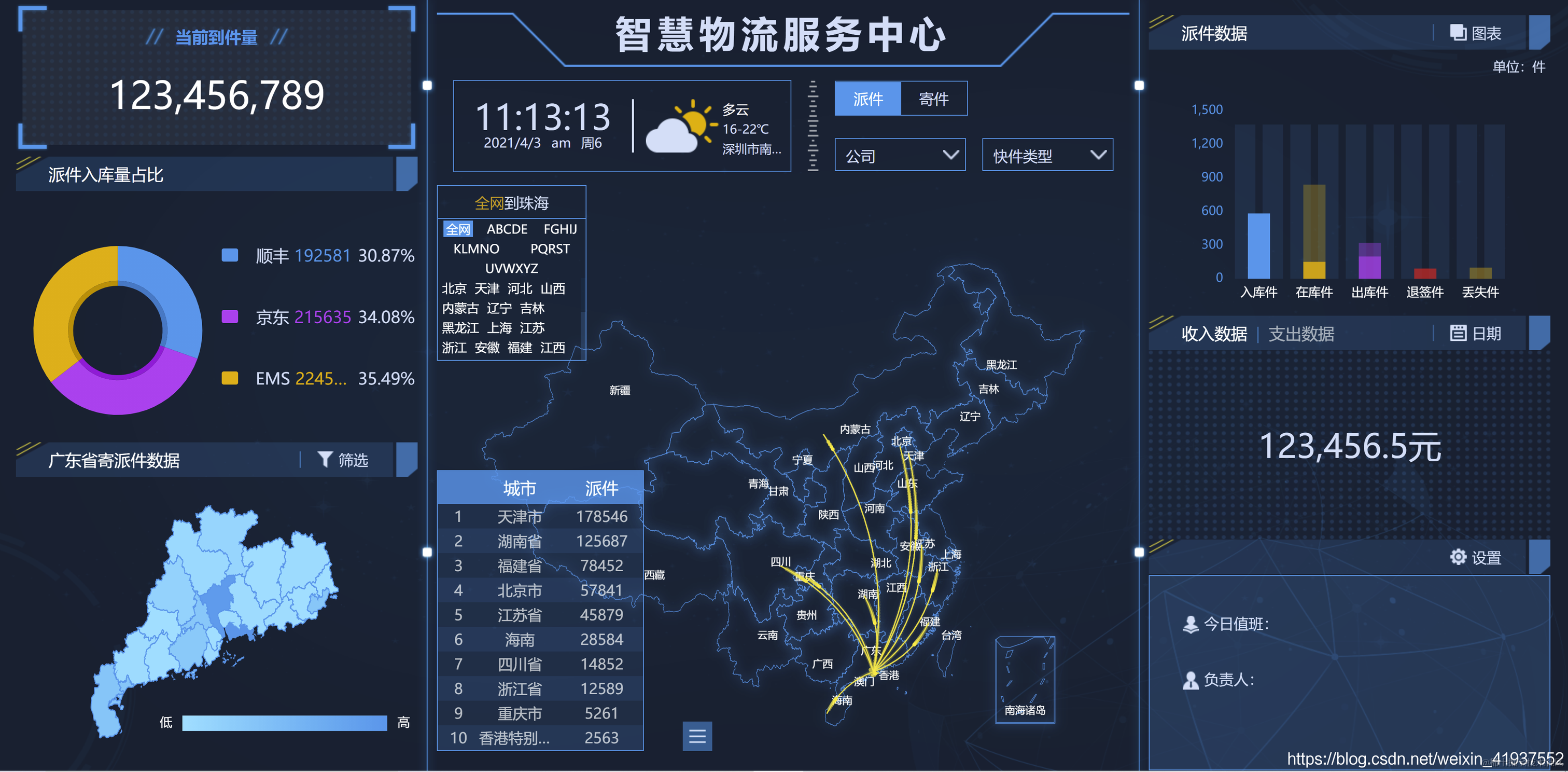基于Echats的可视化大屏智慧物流服务中心
