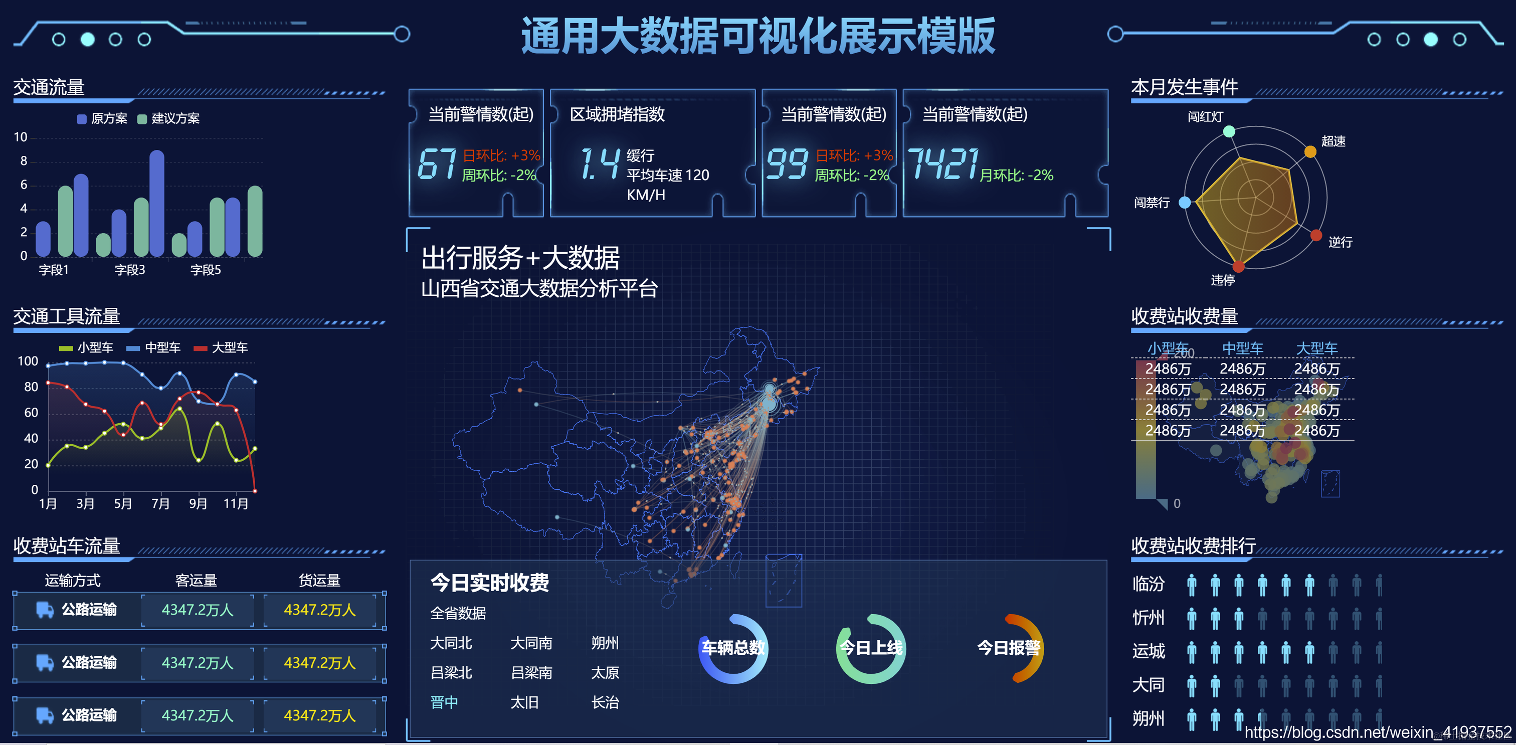 基于Echats的可视化大屏通用大数据可视化展示模版