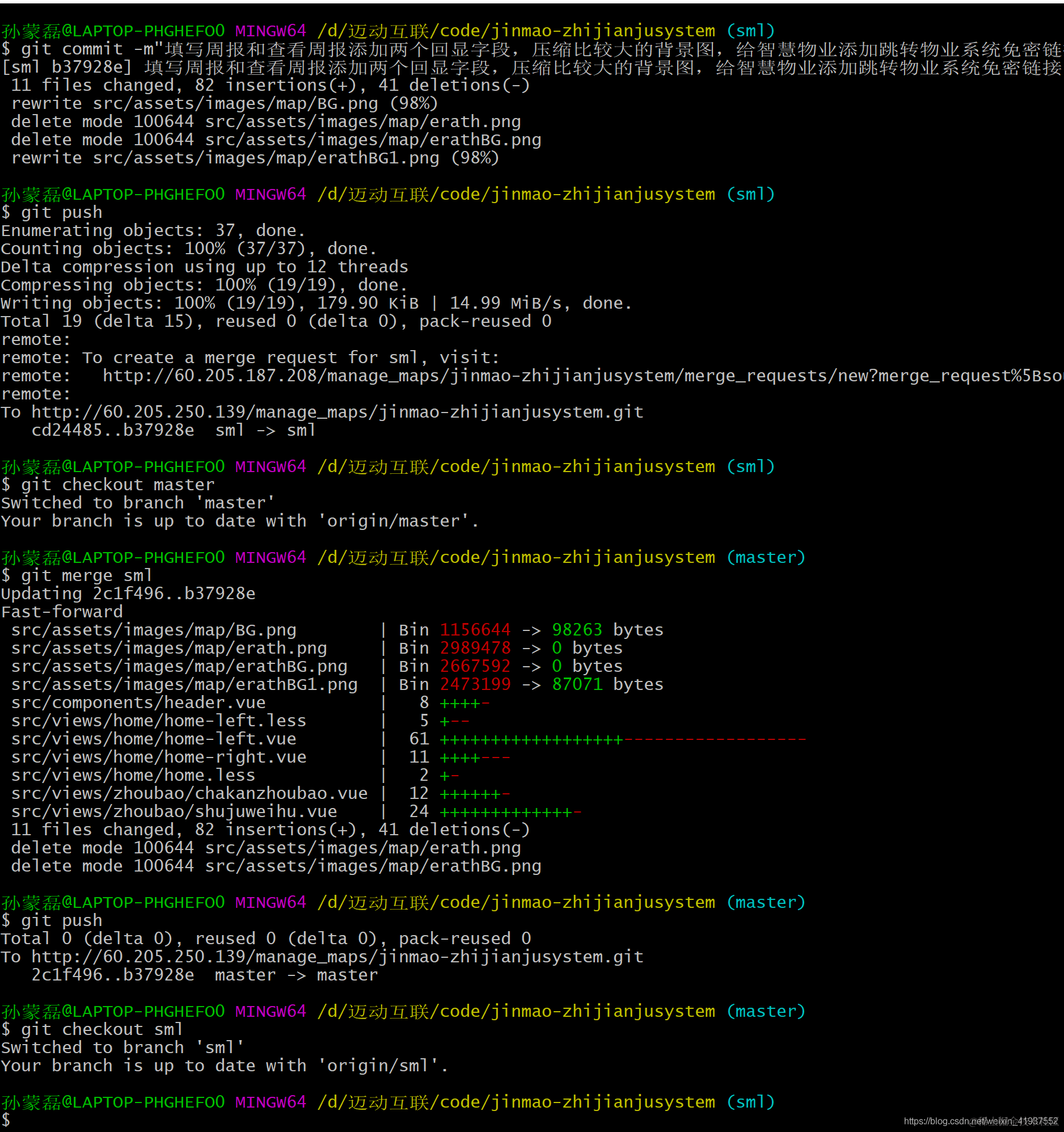 gitlab将分支代码合并到master上 孙叫兽 2021-06-28 680 阅读1分钟 1、首先在test分支上进行 git add . git commit -m "test" git push 2、切换到master上 git checkout master git merge test git push