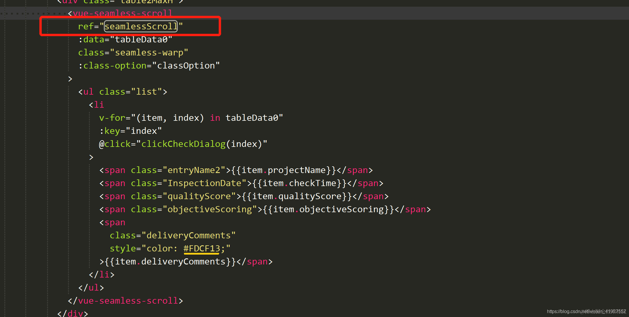 VUE使用vue-seamless-scroll自动滚动表格数据,对表格数据排序无效的解决办法 孙叫兽 2021-06-28 897 阅读1分钟 使用vue-seamless-scroll循环表格数据,建议使用v-for,ul li 的形式便于操作属性,elemengt ui table可能不好处理兼容性问题及属性设置,尤其是一个页面添加多个表格及效果。 VUE : 排序 this.$refs.seamlessScroll.reset() 效果图