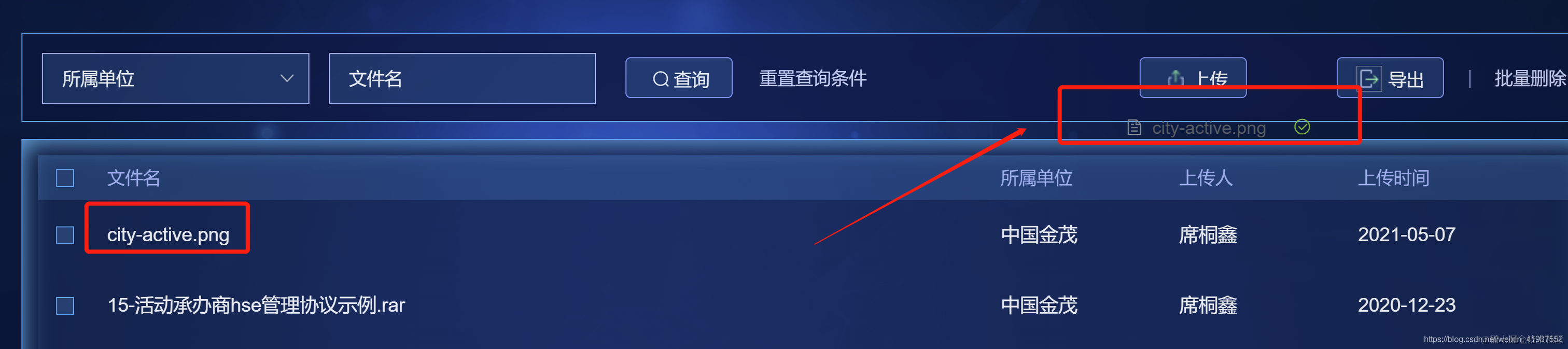 element ui upload上传文件成功后,清除默认的列表。 孙叫兽 2021-06-28 628 阅读1分钟 问题描述:每次提交之后,这个上传按钮会有默认的列表,其实刷新这个默认列表就没了。 清除标记位置的办法: 清除列表:(上传成功后,清空列表) 效果图: