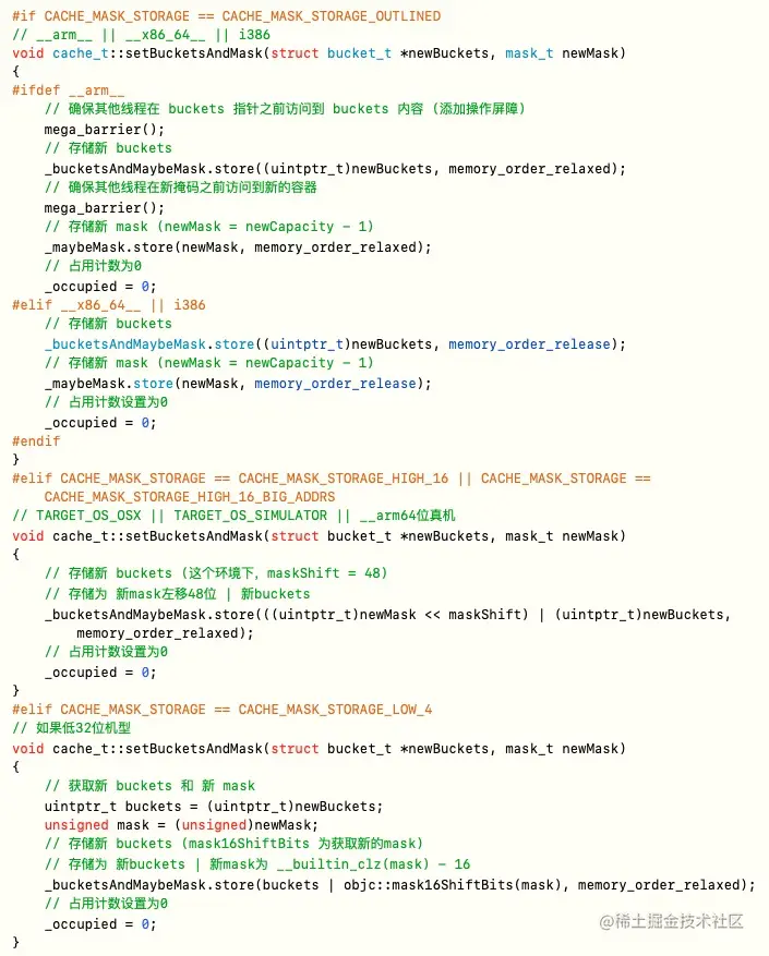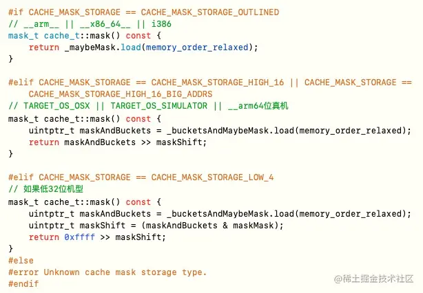 __arm__ || __x86_64__ || __i386__:_bucketsAndMaybeMask存储的只有buckets,mask需要直接从_maybeMask字段读取。