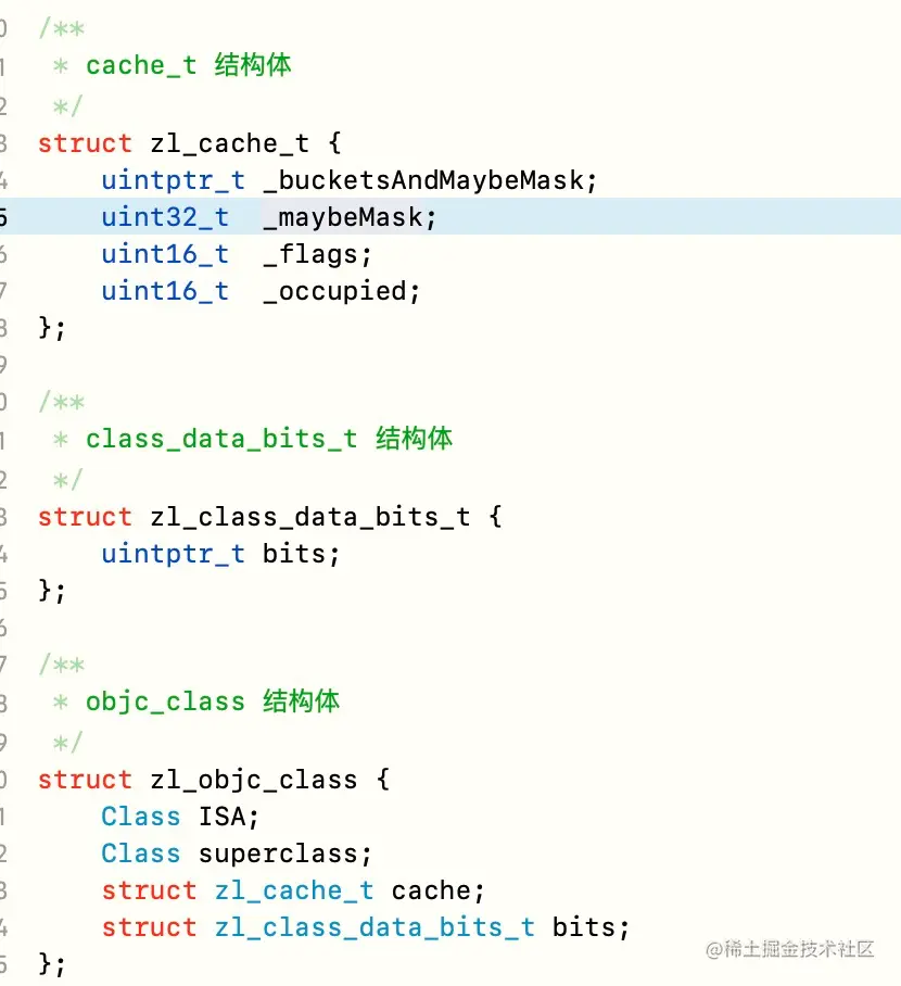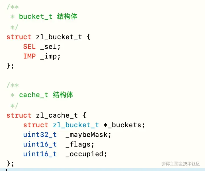 zl_cache_t对应源码cache_t结构,其中_bucketsAndMaybeMask保留,联合体互斥原则,只需要包含_maybeMask,_flags,_occupied的结构体,结构体也可以简化成三个属性。