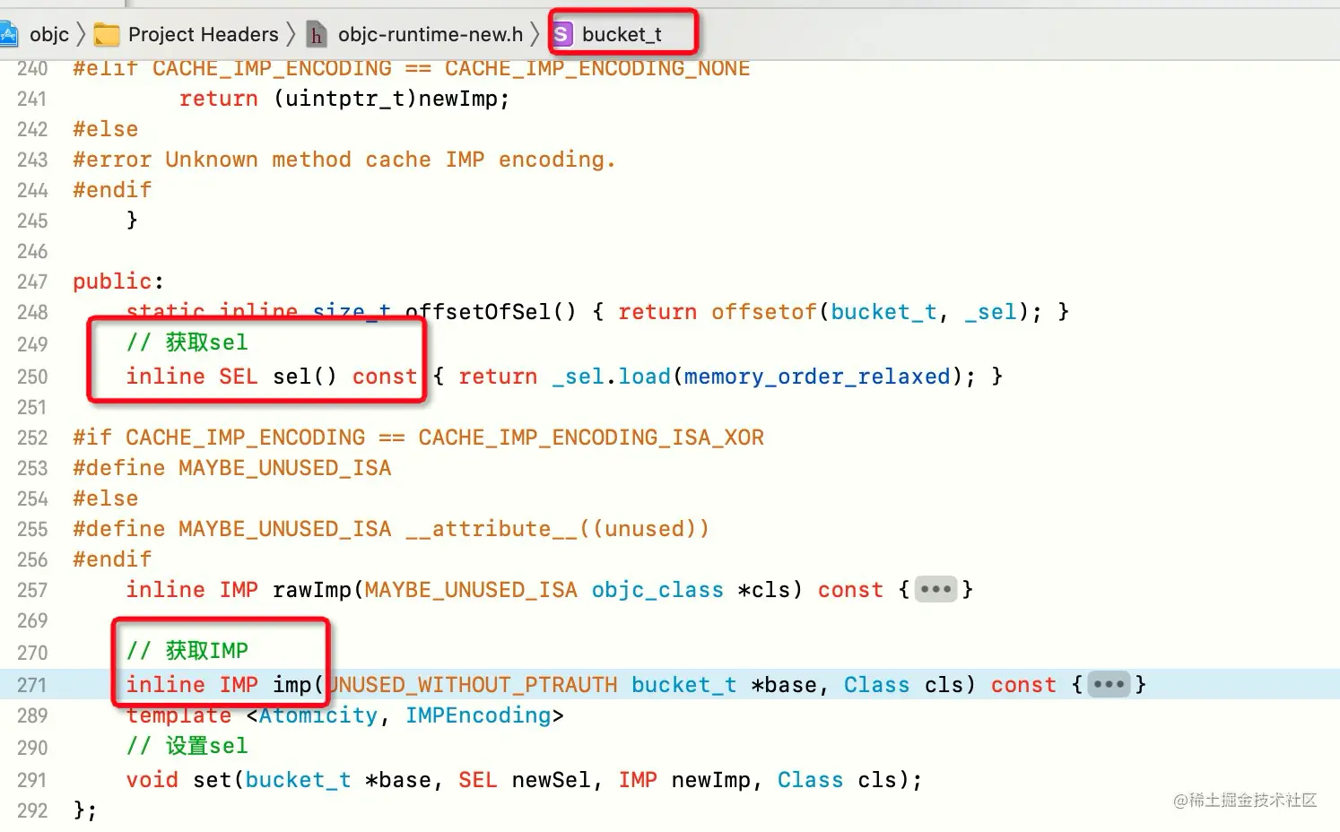 继续分析下 bucket_t 的方法并找到了 sel() 和 imp() 方法