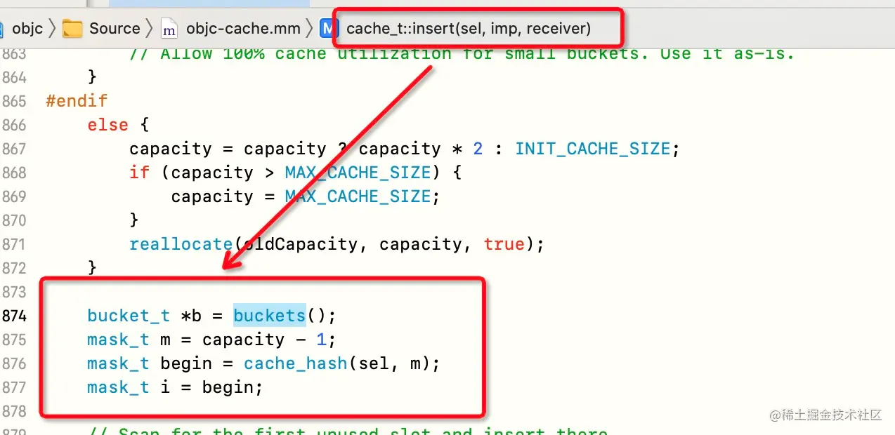 根据 cache_t 结构,虽然可以看到整体的数据结构,但是确定不了缓存数据保存位置。是_bucketsAndMaybeMask?还是 _originalPreoptCache?还有 sel 和 imp 在哪呢?目前并不知道,但是既然涉及到缓存,必然有增删改查操作。