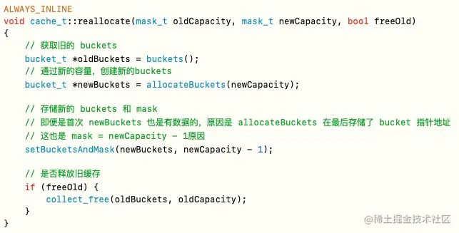 setBucketsAndMask存储新的bucket和mask释放旧的缓存