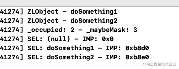 cache时已经证实了,其中_maybeMask和_occupied都是0,代表没有方法。稍后解释这两个字段的实际意义。