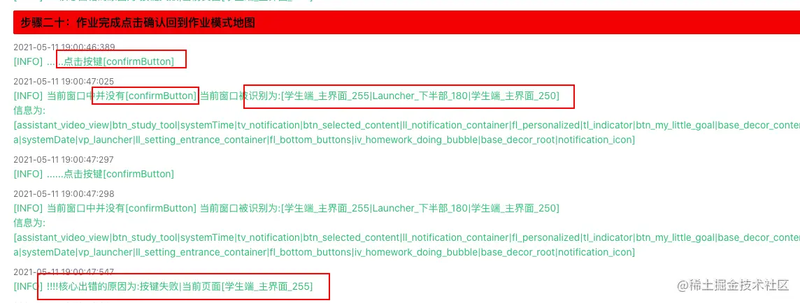 当我们用例失败时,利用原生shoots,我们只能知道哪个按键失败了。而实际上如果我们想要自动归因,或者分析时有更多的信息,那么我们会很希望知道当前是哪个页面。