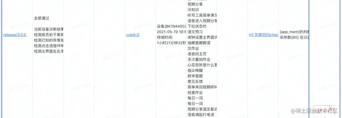 在研发把分支拉出后,就开始打包进行自动化测试。随后一旦研发有修改,我们检测到GIT commit信息发生变化就会打包测试。在这样的操作下,对于分支的质量我们是有感知的,可以前置风险。
