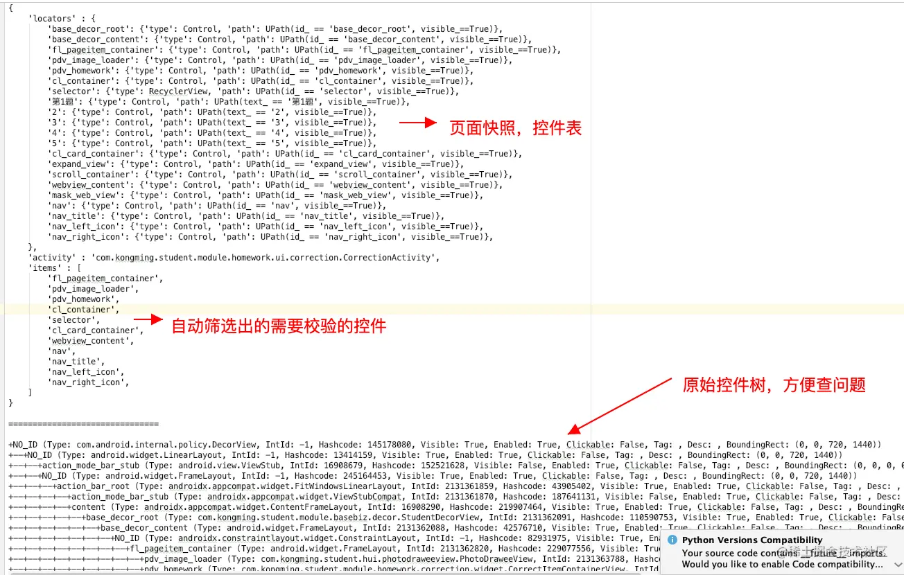 和服务端的Response json树一样,Android的显示页面也是View树结构。所以和服务端结果校验一样,页面校验也是对于页面树的校验。