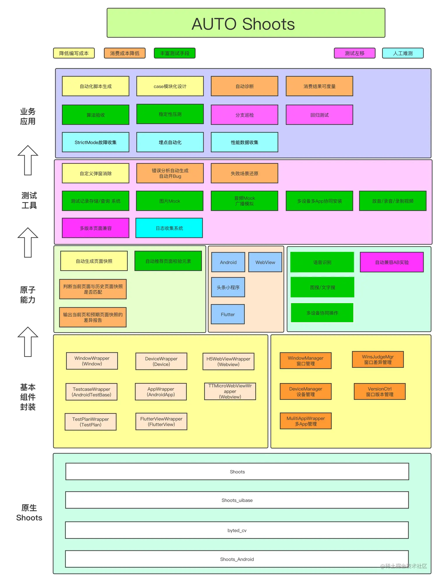 公司的Shoots自动化框架非常给力,功能强大。但在实际使用Shoots中,结合业务的实际需求,我们认为UI自动化还应具有以下能力: