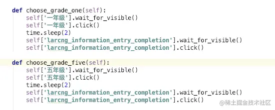 下面是自动生成的代码举例:类名直接退化为对应的中文名(录制过程中手动输入),对应的函数点击也会以id名+文字注释的方式自动给出。