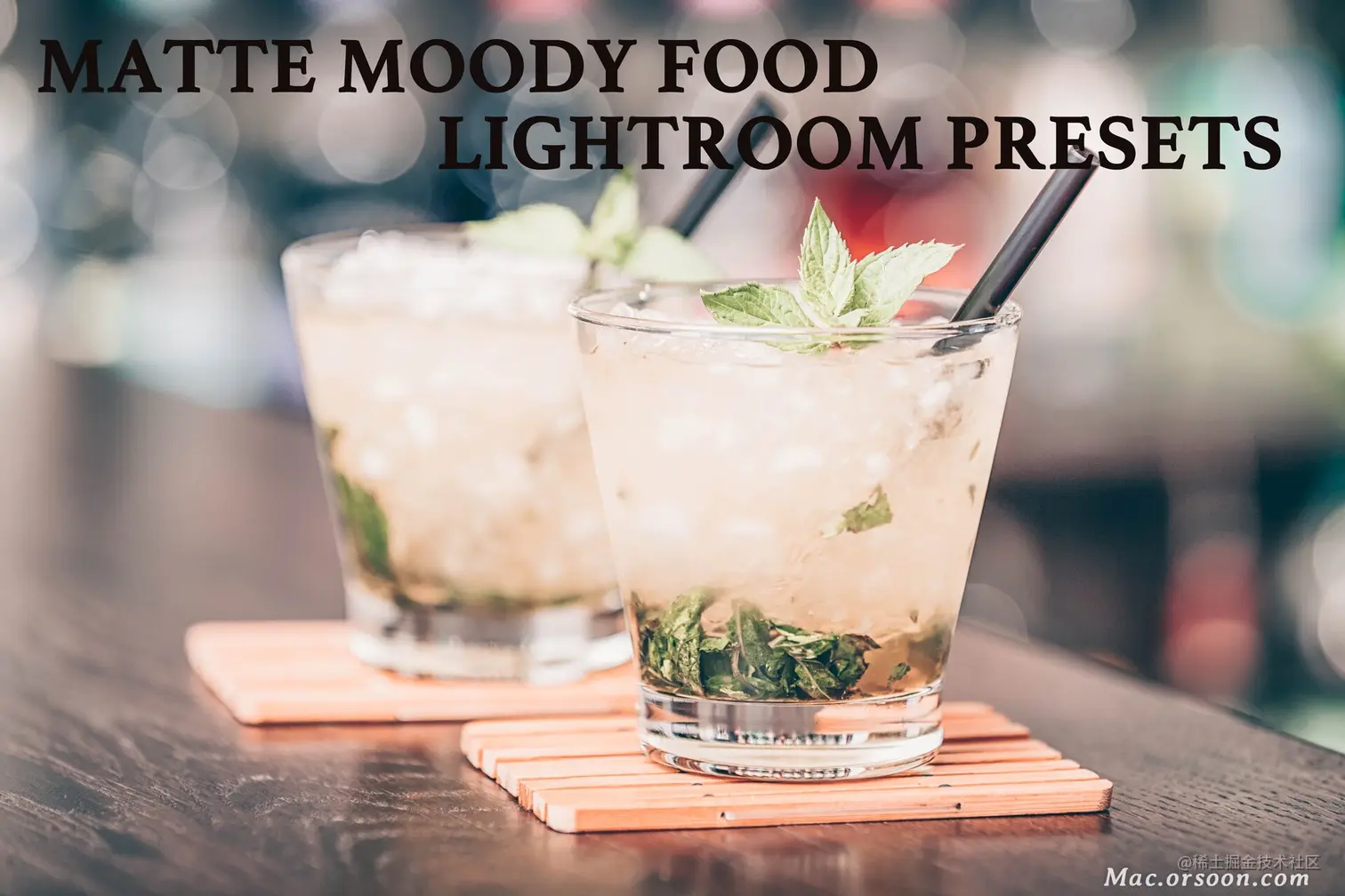 包括 Matte & Moody Food Photography Collection 包括 22 个 Lightroom 预设、10 个原始预设和 14 个预设变体,可以使用并匹配首选颜色,对比和轻场景。