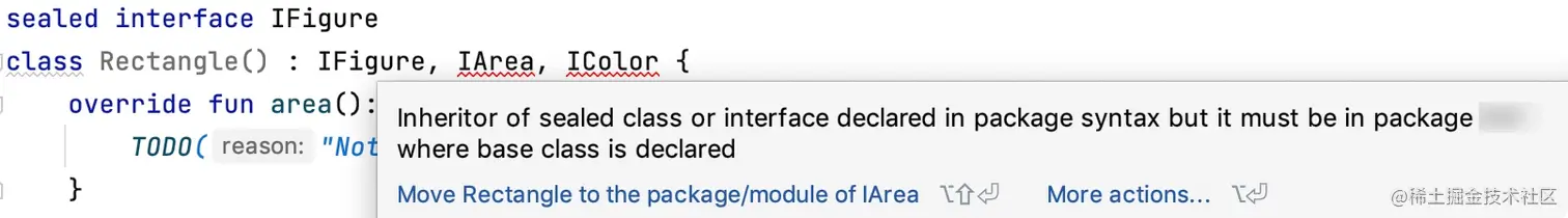 Sealed Interface 允许子类有多个实现,自由度更高,使得代码更加的灵活,但是它和 Sealed Classes 一样,被限制在了同一个包名和 module 下面,如果违反这个限制编译就会出错。