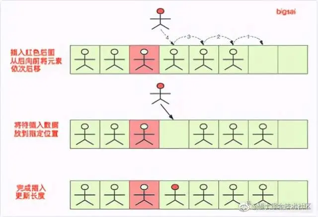 (1)从后(最后一个有数据位)向前到 index 依次后移一位,腾出 index 位置的空间